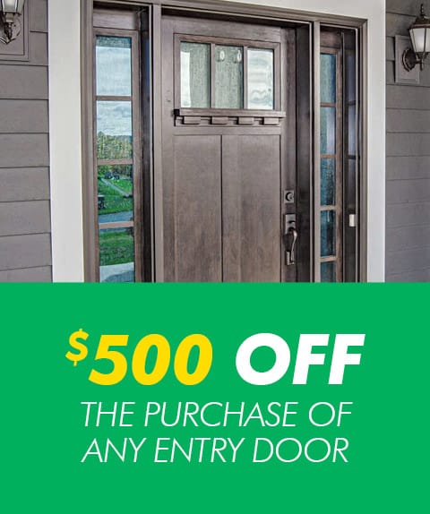 Redeem now Purchase any entry door and receive $500 off the total price of the job. Can’t be and combined with any other offer. Offer expires April 30, 2024. See disclaimers page for complete details.