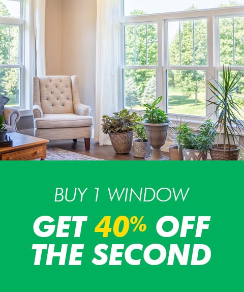 Redeem now Purchase 1 window and save 40% off the 2nd window. Second window must be of equal or lesser value. Minimum purchase of 4 windows. Cannot be combined with any other offer. Offer expires April 30, 2026. See disclaimers page for complete details.
